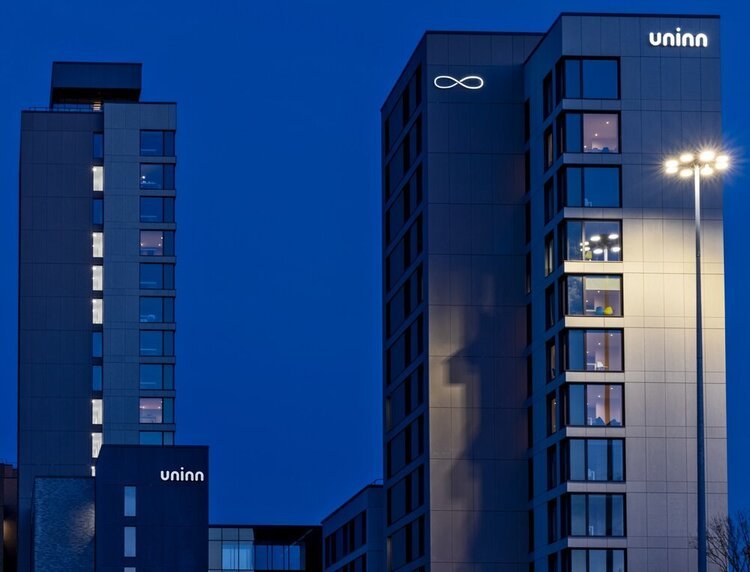 The project saw our teams install eye-catching UNINN branding at the top of each of the developments’ three towers, which are six, thirteen and nineteen storeys high. In addition, we created and installed internal wayfinding signage and door numbers throughout each of the three buildings.
